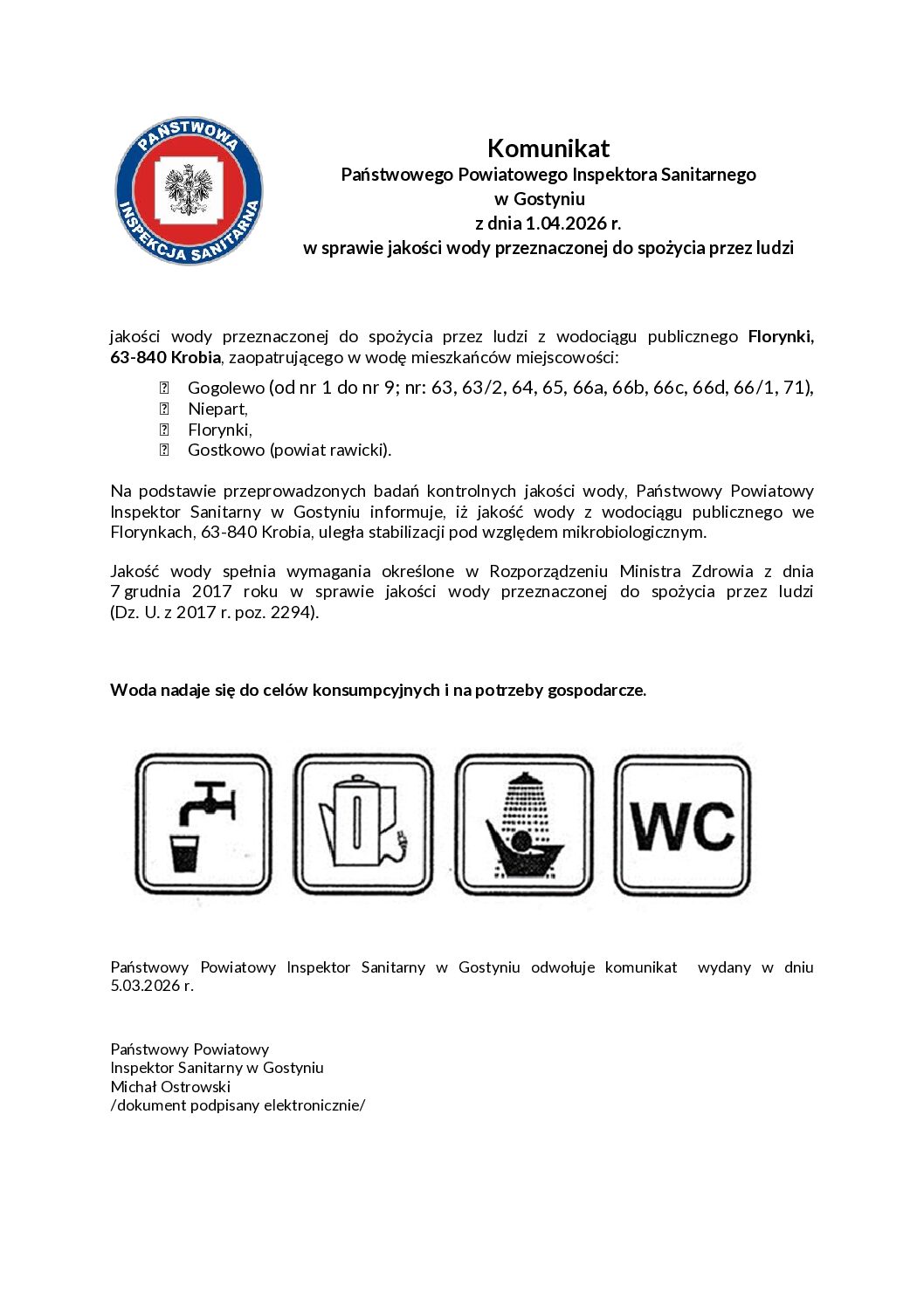 Tym samym odwołany zostaje poprzedni komunikat ostrzegawczy z dnia 5 marca 2026 r.